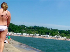 Wearing bikini bottoms that made their large booties look greater quantity than hawt as they bounced, a bunch of saucy college women got taped by a pervy dude from behind.