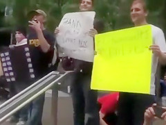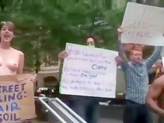 Half-undressed honeys protesting against capitalism