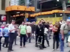 There's no more excellent way to attract the attention of the media but going naked on the street of NYC, as everybody loves to watch some arousing pairs of mangos on the prettiest college beauties.