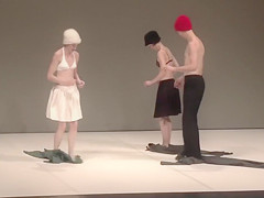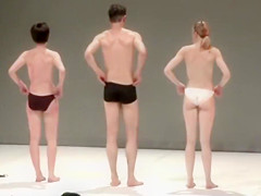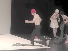 Marvelous actresses receive partially bare whilst acting in a play