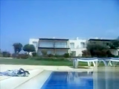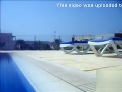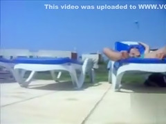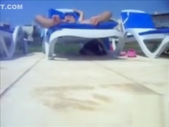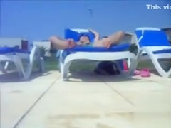 No one else is out by the pool so my darling happily masturbates her cunt with her legs widen. I’m in the pool and filming with a valuable view of her fingers working her bawdy cleft.