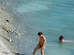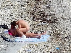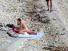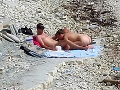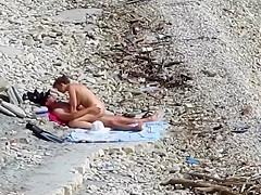 Fleshly beauty jumps on her boyfriend's overweight schlong at the stripped beach
