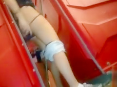 During an open-air festival, a bunch of beauties needed to pee, but could not hold it in and expect in the line, so they had to do it next to the biffy. I waited for 'em there with a camera.