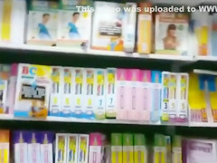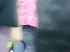 This Guy follows this cute college hotty in jeans and a pink jacket around the store, filming her wazoo and eventually whipping out his dong and stroking in public as this chab ogles her.