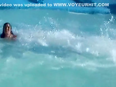 Petite scoops and arse naked on the waterslide