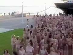 Hundreds of nudists disrobe for a camera stud
