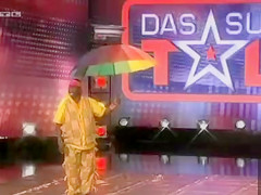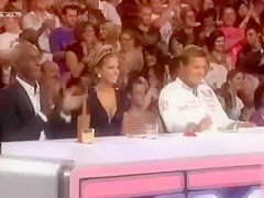 Sitting betwixt the 2 male judges is a hot lady with incredible cleavage, and as the performer works his magic on stage u receive some glimpses of these billibongs in a purple costume.