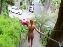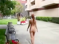 Even though the consequences for doing smth like this could have been indeed bad, the chocolate hotty decided to receive fully exposed and take a lengthy, provocative walk.