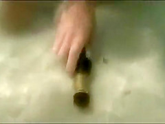 My breasty girlfriend sticks a beer bottle in her slit and swims around