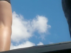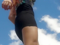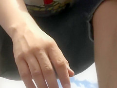 Having completely no idea that there was a camera taping her from underneath, a hotty in a short petticoat had her white underclothes recorded by it.