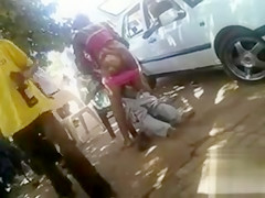 Darksome prostitute gives a nasty public lap dance