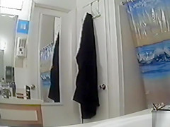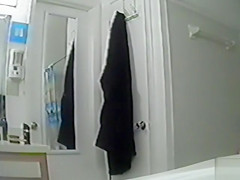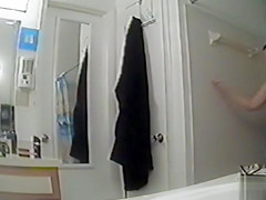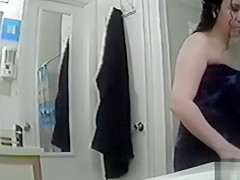 After taking a warm and gratifying shower, my curvaceous aunt went out and decided to dry herself up, showing off her large titties and moist cunt in the process.