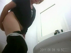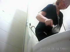That Babe doesn’t know the spycam is filming in the lavatory as the aged lady squats over the loo and takes a poop. She’s done quickly and then that babe wipes and finishes up.