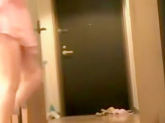 This Babe tries to wrap a towel around her body, but that babe can’t aid but show the delivery lad her diminutive love bubbles and Oriental bush. This Chab turns around so this guy doesn’t have to watch her.