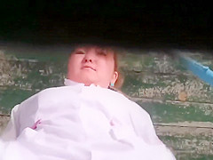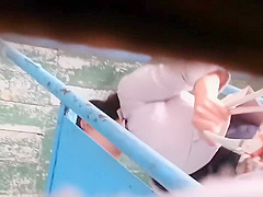 Not knowing that there was a hidden webcam in the outhouse, an Asians pulled down their pants and squatted down in order to take a void urine.