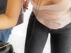 As a coed wearing a revealing reservoir top bent over, a peeper got his camera willing and managed to catch a discharged of her milk shakes in the very exact pont of time they popped into view.