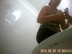 Her corpulent arse and rolls of abdomen overweight are in view as the curvy woman pees in the public loo. That Babe wipes and cleans up afterwards, taking her time to receive clothed anew.