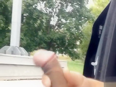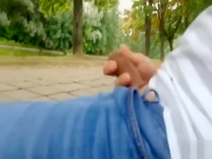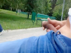 Dilettante compilation of stud jerking off his penis in the park