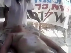 Letting me record a massage techniques for dilettante purposes, my woman exposed down undressed and let a masseur rub her body with hands.