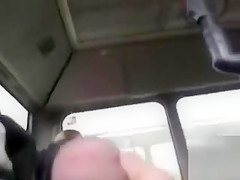 Description: I love public flashing and masturbating and this day I expose my shlong on the bus and jerk off whilst looking at a gorgeous blond cutie across the aisle. I crave her to look over at my cock so badly.