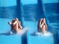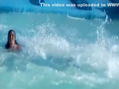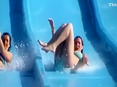 Wearing a flimsy bikini that barely overspread her large bazookas, a enchanting babe jumped onto the waterslide and 'coz of the power had her bikini top tugged, revealing her breast in the process.