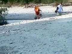 Our hike took a detour to this riverbed 'cuz my darling wanted to have some joy, and here that babe is utterly naked and masturbating her gorgeous cum-hole during the time that lying in the rocks with her large marangos out.
