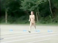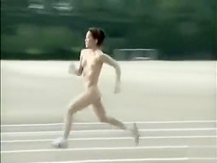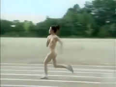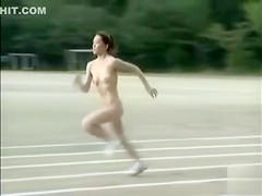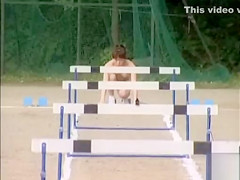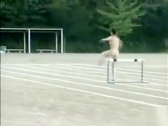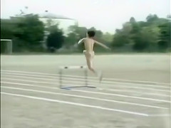 Sneakers and socks are all the cute Japanese beauty wears as this babe runs the hurdles, her body a firm and fit delight. They show it a second time in slow motion so u can indeed appreciate it.