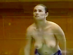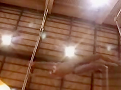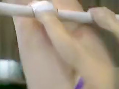 This Babe takes off her robe to disclose solely bikini bottoms, leaving her glamorous scoops and the rest of her muscular gymnast body bare. That Babe does a routine on the uneven bars that looks so hot.