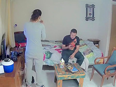 Hiding a camera in her bedroom, a glamorous lass let her stud fun her wet bawdy cleft with fingers previous to sticking his erected schlong inside of it and ramming it with fervor.