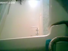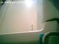 Slender angel in a petticoat pees in spycam movie