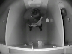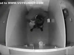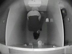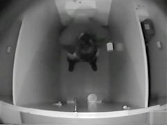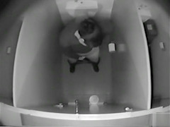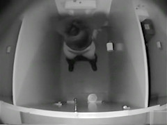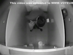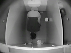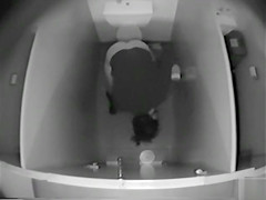 From above the restroom stall the hidden webcam films and we watch a cutie come in, go pee, and then take some time to examine her muff and make sure it’s clean.