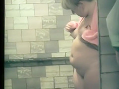 Unaware of a hidden web camera recording 'em, 2 yummy BBWs with giant love bubbles took off their garments and jumped into the shower booth to wash their biggest bodies.