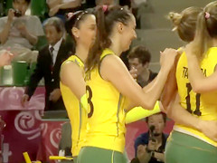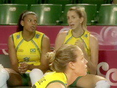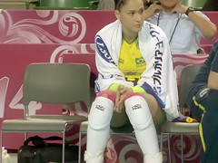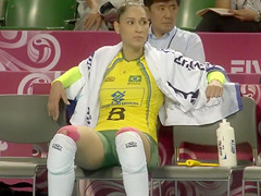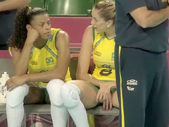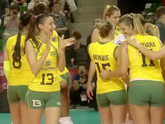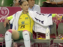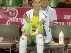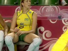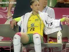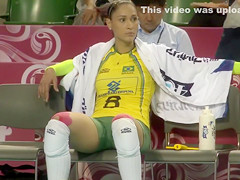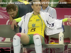 Fit volleyball player has her muff imprinted on her shorts