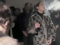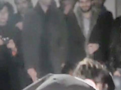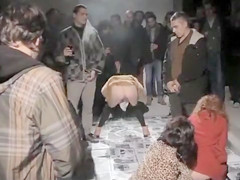 Strewn on the ground are fotos of their country’s leaders and they protest by urinating on these pictures. College beauties squat and lads pull out their penises to piss on the faces.