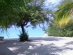 Hotty with plug in the a-hole positions for a lad at a public beach