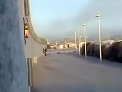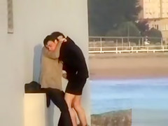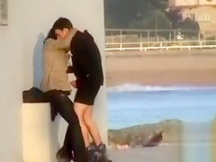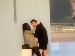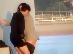They’re down at the end of a lengthy concrete walkway and they think they’re all alone as this chab strokes his pecker and fools around with his breasty cutie, who appears to be glad to have him cum on her.