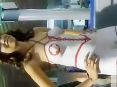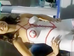 Nice-Looking model acquires a nurse outfit painted on her in nature's garb body