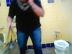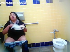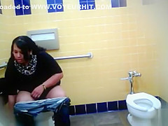 Obese raven-haired bimbo could not hold it in anymore, so this babe went to the throne-room in order to void urine. Luckily, somebody had hid a camera that recorded it all.