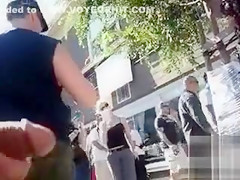 If there’s one place in the world public jerk will be tolerated it’s a homo pride parade so this boy whips out his shaft and strokes it whilst hundreds of people walk by.