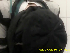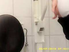 Setting up a spycam in the lavatory, I was able to catch a sexy stunner on tape as that babe went to the shitter, pulled down her panties and trousers and peed indeed hard.