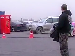 Smokin' honey with big natural scones got to ride in a actually fast car during the time that wearing a flimsy shirt and no brassiere, so as the car was drifting her boobies were disclosed.