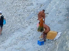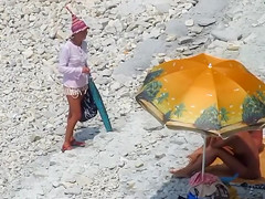Enjoying the sun at the beach whilst being absolutely in nature's garb, a captivating honey decided to do smth about her ally being lewd and went on to blow his thick shaft.