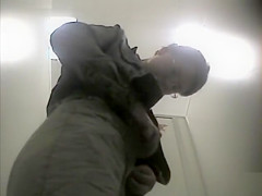Shaggy woman wipes her shitty anal opening in the public shitter