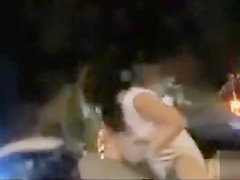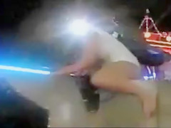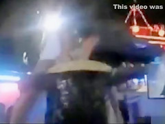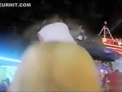Even though that babe knew that riding the mechanical bull will probably disclose some of her private zones to the strangers, the suave maid still decided to give it a go.