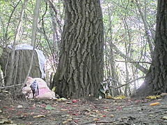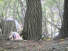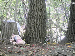 Girls are urinating in the park out of knowing they are being followed and taped by a lewd chap, a secret admirer which can't live without watching 'em naked like that.