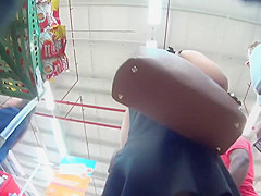 Wearing a dark petticoat that was so short it not quite disclosed her wazoo, a delightsome brass had no idea that there was a man with a phone camera in his shoe filming her from beneath.