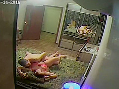 After this chab put on a fucking-rubber and some vaseline, this mamma's paramour started humping her vagina in the missionary position, totally unaware of the surveillance camera.