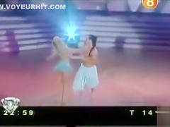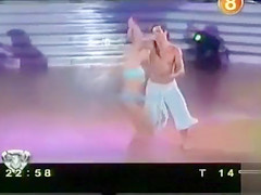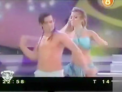 On a dancing competition show this hot blond sweetheart wears a diminutive petticoat and as this babe shakes her arse it flies up, exposing marvelous arse flesh.