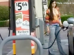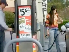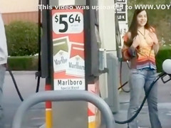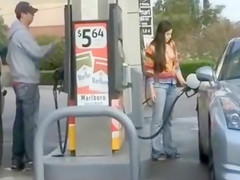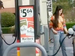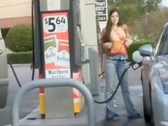 My sweetie is at the gas station filling up the car and this babe has a little joy by pulling out her mambos and showing 'em off. There’s a chap gassing his car just a hardly any feet away and this chab doesn’t watch her.