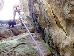 Breana in bitch gives face hole gagging bj in the outdoors